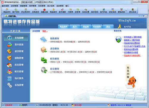 易特进销存食品版是一款内容丰富,可以使用户轻易上手的软件。软件功能丰富而实用,为日常的业务管理提供了完整的解决方案。软件集进销存、财务管理于一体,帮助食品经营企业实现对采购、销售、存货等经营环节信息的全程记录、传递、跟踪和分析,从而实现企业物流、资金流、信息流的全方位管理和监控。