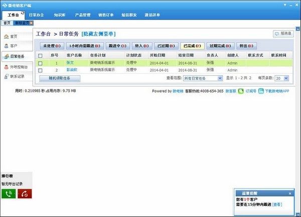 记录完整的客户跟进过程和通话记录,集中存储,永不丢失,再也不会遗忘沟通细节。设置下次联系时间,到点自动弹窗提醒!