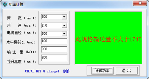打开皮带机功率计算软件,输入皮带机相关参数,点击计算功率,即可计算出皮带机最大可承受输送量。