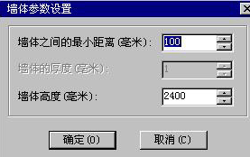 3、在创建过程中,软件还会随时提示您所创建墙体的长宽度信息(单位:毫米),在窗口的状态栏中也可以看到。由于这里属平面设计,墙体的高度则需要通过“选项”菜单的“墙体参数设置”命令来完成,如下图,一般情形下,墙体的高度为2400毫米(即2.4米)。