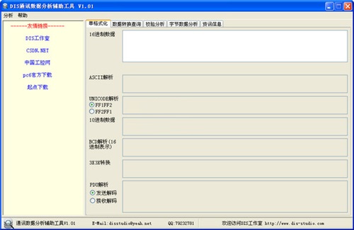 DIS通讯数据分析辅助工具官方版是一款用于串行口和以太网通讯数据分析的辅助工具,它提供了串格式化、数据转换查询、校验分析、字节数据分析等若干功能,是一款协议辅助分析的利器。