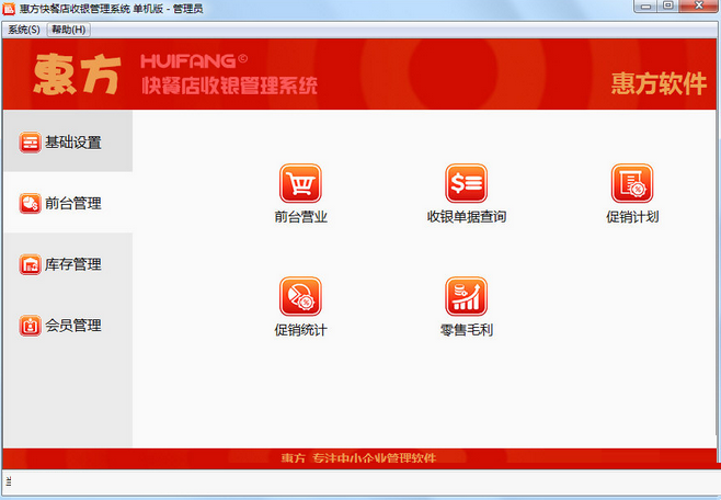 惠方快餐店收银管理系统电脑版主要应用于快餐店行业使用的管理工具。惠方快餐店收银管理系统电脑版可以对快点点的收银、会员、还有库存等管理都可以做到很详细。