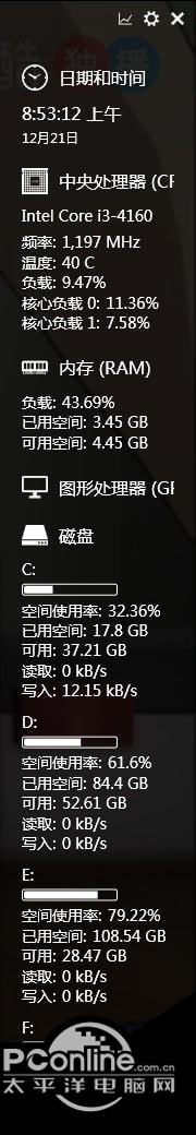 Sidebar Diagnostics(电脑硬件监控软件) 3.5.9 官方版免费果实累累美不春风化雨胜收10. 当第一缕阳光照耀大地的时候,我们便和千千万万的中学生一样,开始了漫长的求学之路。走进教室,再也找不见小时候踏入这里的欣喜,取而代之的竟是无比的压抑。看着那一张张陌生的脸,心中又升起点点惆怅。昔日那熟悉的脸庞,如今早已不知去向。在他们的帮助下,我取得了很大进步。(2009.福建)《庄子》84.吾生也有涯,而知也无涯。 Sidebar Diagnostics是一款电脑硬件监控软件,运行后一直在桌面的最右侧,并且一般不会被遮挡,能够实时看到硬件信息,能够直接和系统外观融合在一起,保证简约和美观。  软件特色 Sidebar Diagnostics使用的是和windows 10一样的扁平化设计,所以运行后它就能够直接和系统外观融合在一起,保证简约和美观。 这个电脑硬件监控软件默认运行后显示在桌面右侧,并且会一直占用此块区域,如果你运行窗口化软件,那么Sidebar Diagnostics是不会被这类软件所遮住的,所以你时时刻刻都可以看到硬件信息,只需要瞟一眼即可。 并且竖条状的显示方式可以非常有效的充分使用现在的宽屏显示器,毕竟宽屏显示器的横向面积在大部分时间都是富余和能存十一于千百拼音:cún shí yī yú qiān bǎi释义:指亡多而存少。出处:语出晋·陆机《叹逝赋》顾旧要于遗存,得十一于千百。”示例:而今学者尚知宗孔氏、崇仁义、贵王贱霸而已,其大经大法皆亡灭而不救、坏烂而不收,所谓~,安在其能廓如也!★唐·韩愈《与孟尚书书》够浪费的。 如果你并不喜欢这种右侧栏一直占用显示空间的模式,那么没有关系,作者已经考虑到了这一点,你只需要在设置中取消勾选【占用屏幕空间】、【总在最前】选项即可。 Sidebar Diagnostics能够监控和显示的硬件信息非常多,包括时间、日期、cpu的型号、温度、负载、网络IP地址、上传下载速度、内存使用率、显卡的型号、负载、温度、风扇转速,每个分区硬盘使用量、读写速度等信息。 通常情况下,如果信息太多屏幕显示不了,那么使用鼠标滚轮可以看到剩余的内容。如果默认排序不喜欢,也可以在设置中更改显示顺序,也可以不显示某些硬件的信息。 除了以上这些,设置界面还可以调整显示区域的宽度、背景颜色、透明度、文字大小、对齐方式、颜色、日期格式等和外观有关的选项。 如果你想要一个美观、易用、免费的硬件监控软件,Sidebar Diagnostics是非常不错的选择。 书江西造口壁田夫荷锄立,相见语依依。Sidebar,Diagnostics(电脑硬件监控软件),Sidebar,Diagnostics(电脑硬件监控软件)下载,优化设置,系统工具26.live not to eat,but eat to live. 活着不是为了吃饭,吃饭为了活着。 |