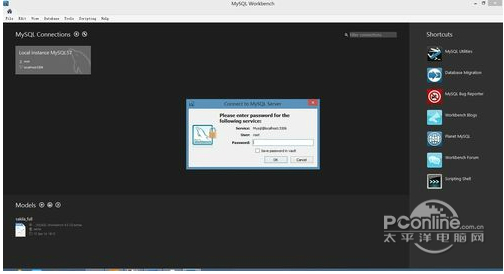 使用方法: 首先,打开MySQL Workbench,双击打开即可。打开后的界面如下所示,然后选择数据库实例,双击进行登录。图中数据库的实例是Local instance MYSQL57  软件截图7 然后,输入用户名和密码进行登录。如下图所示:  软件截图8 其中,区域1显示的是数据库服务器中已经创建的数据库列表。区域2是关于数据库的操作列表。区域3是sql的编辑器和执行环境,区域4是执行结果的列表  软件截图9 在sql的编辑器中输入测试语句,其中world数据库是mysql自带的测试数据库,然后选择执行(或者使用快捷键ctrl+enter)。查询结果会显示在下面的列表中。  软件截图10 使用完毕后,直接退出,并且如果无需数据库的后继操作的话,记得关掉MySQL的服务 常见问答: 1、mysql workbench,如何导入一个数据库? 答:首先你先建一个你要的数据库,然后点击Open a SQL Script File,导入你的数据库语句,再点击execute SQL Script in Connect Server,就ok了 2、MySQL Workbench的操作界面怎么显示为中文/ 答:无法显示,建议你可以用第三方软甲 来操作它,可以用navicat软件 小编在这推荐的MySQL Workbench是一款可以为数据库管理员、程序开发者和系统规划师提供可视化设计、模型建立、以及数据库管理功能的数据库建模工具。它里面的ER模型可以用于创建复杂的数据库建模,正向和逆向数据库工程,它不仅可以进行复杂的MySQL迁移,而且能够建立数据库文档。 临江仙 苏轼独敲初夜磬,闲倚一枝藤。MySQL,Workbench,数据库We must look (search / all / cry) for an immediate action (method / measure), because the present (current) situation (phenomenon / tendency / state / attitude) of …, if permitted (allowed) to continue (proceed), will surely (certainly) lead to (result in) the end (destruction / heavy cost) of… |