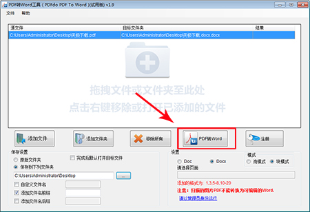 PDF文件转换为微软Word(.doc)兼容的格式。自由选择特定的页面范围从一个到很多与此软件转换