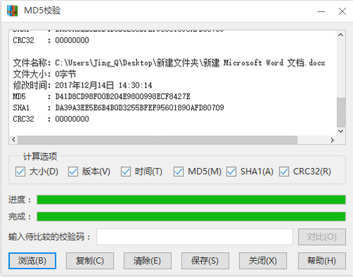 万能压缩给提供了【计算MD5】的功能,MD5、SHA1、CRC32数据可以看到。