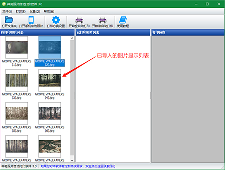 第一步:打开图片,点击软件左上角“打开文件夹”按钮,选择需要打印的照片所在文件夹,打开之后,文件夹内照片会导入并显示在软件中,界面如下: