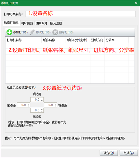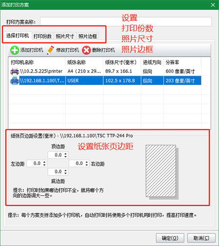 温馨提示:每个方案可以添加多个打印机,自动打印时将使用多个打印机同时打印,提高打印速度。