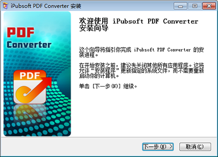 1.从本站下载iPubsoft PDF Converter软件包,解压后进入安装向导,单击【下一步】继续