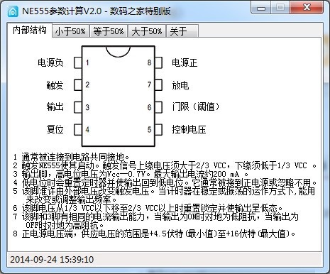6、该脚电压从1 /3 VCC 以下移至2 /3 VCC 以上时重置锁定并使输出呈低态