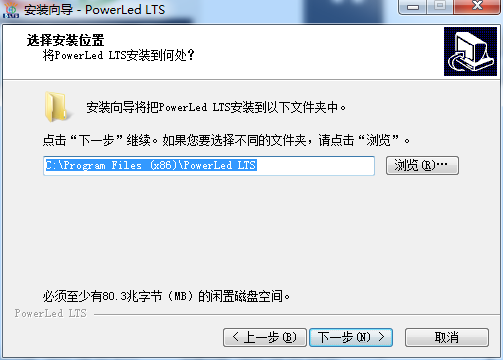 3、选择安装位置,默认的是C:\Program Files (x86)\PowerLed LTS,可以点浏览修改