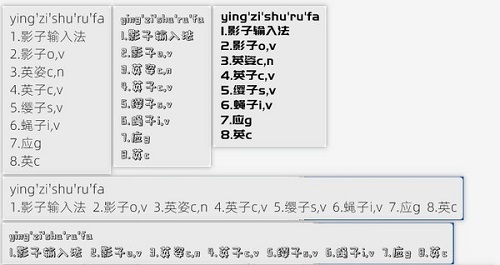 输入方案:分为拼音、形码两大类。拼音及双拼都归为拼音类,使用pinyin词库;所有最大码长为4位的都归为形码类,包括五笔、小鹤音形等,使用的词库由导入的文件名决定,在导入后重新打开选项选择相关选项。