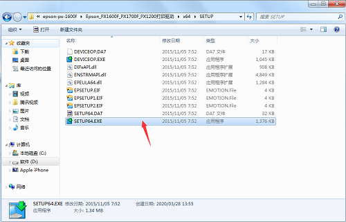 2、根据自己的系统选择合适的安装文件,小编这里双击打开Epson_PX1600F_PX1700F_PX1200打印驱动文件夹x64文件夹下的setup.exe文件