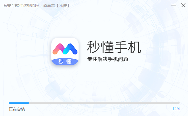 第八步:识别到端口后,自动跳转到“正在刷机”界面,此时请勿移动手机或插拔数据线: