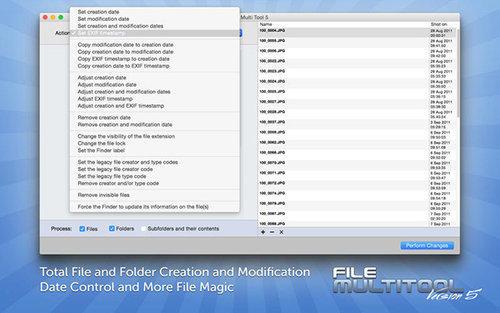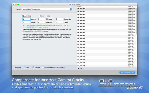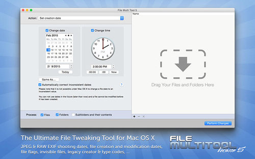 File Multi Tool Mac版 6.24 正式版免费手恬不学而不厌知耻无缚鸡之力36. 生活是蜿蜒在山中的小径,坎坷不平,沟崖在侧。摔倒了,要哭就哭吧,怕什么,不心装模作样!这是直率,不是软弱,正因哭一场并不影响赶路,反而能增添一份留意。山花烂漫,景色宜人,如果陶醉了,想笑就笑吧,不心故作矜持!这是直率,不是骄傲,正因笑一次并不影响赶路,反而能增添一份信心。52. Chinese knots stand for friendship, love and good luck.(2013.全国)134.独木不成树,独树不成林。《汉府诗集?古乐横吹曲?紫骝马歌》 File Multi Tool Mac版是一款Mac平台下能够帮助我们实现批量修改图片文件信息的小工具,File Multi Tool Mac版不但能够更改图片文件的修改和建立日期,还可将图片文件锁上,使其他人不能修改、重新命名、移动或拷贝这些图片,可单独处理图片文件和整个文件夹内的图片,支持子文件夹的批处理,并且支持拖放操作,可对整个文件夹内的图片进行创建和修改日期操作。  就像Photo Date Changer一样,File Multi Tool让您操作JPEG,CR2,NEF,ARF,CRW和CIFF的EXIF时间戳将通过他们特定的时间或批量调整,通过添加和移除时间(用于纠正了一个错误地设置时钟数码相机图像的时间戳和补偿时区的变化)。  软件截图2 功能介绍 1.是否文件扩展名显示在Finder 2.批量锁定或解锁文件 3.设置或移除遗留的创造者和类型代码 4.除去隐藏的文件 5.Finder中看到无形的文件 6.批Finder标签设置 7.迫使搜索更新文件和文件夹信息 8.批量操作 9.拖放到文件列表或在应用程序图标 10.选择在查找文件和启动文件多工具5通过查找上下文菜单或通过热键 11.自动处理文件数据一致性规则 12.单独处理的文件和文件夹,子文件夹批量处理  软件截图3