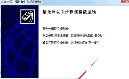 3、请按照以下步骤连接打印机,点击下一步