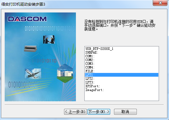 4、手动选择打印机端口,点击下一步