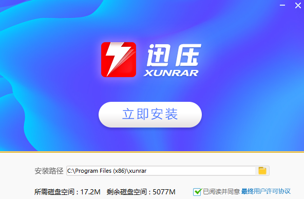 1.在天极下载迅压官方包,双击打开,进入软件界面,点击“立即安装”