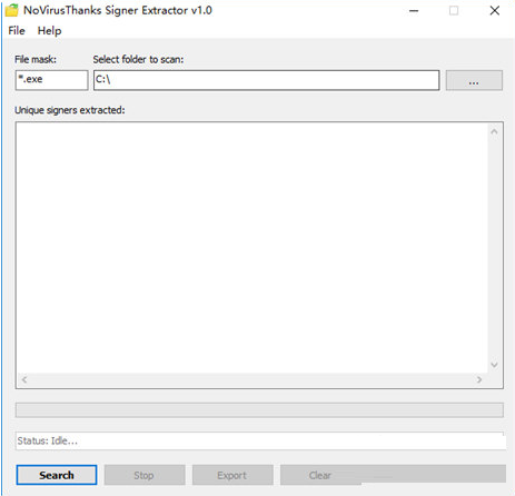 使用NoVirusThanks Signer Extractor很简单,只需点击搜索按钮,它就会扫描目标区域,将发现的数据放在界面的主窗口中。任何提取的签名者将是完全唯一的(意思是没有重复的),它将按字母顺序对它们进行排序以获得有效的引用。然后,可以很容易地以简单的格式(每行一个签名者)导出签名者列表,这样就可以方便地将其导入/粘贴到您所选择的任何地方。