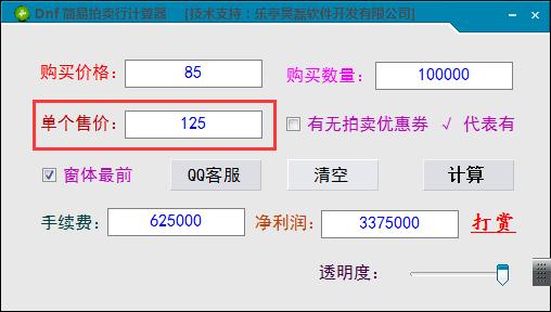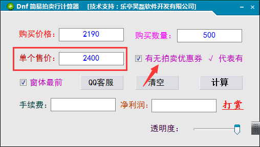 1、安装以后在Windows桌面找到软件,双击Dnf拍卖计算器启动软件