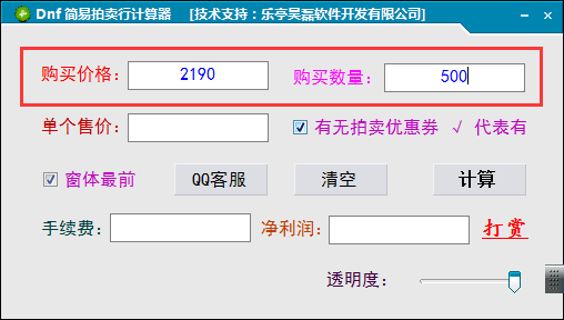 3、在软件的界面上输入购买的材料价格,例如魔刹石的价格输入2190,购买500个