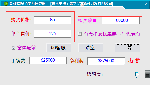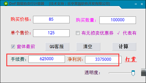 9、提示您出售十万无色,产生的手续费是625000,利润是3375000