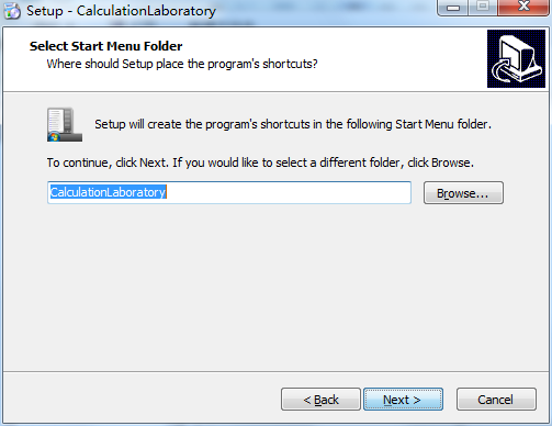 6、对开始菜单进行选择,默认“C:Program Files (x86)CalculationLaboratory”,点击Next;
