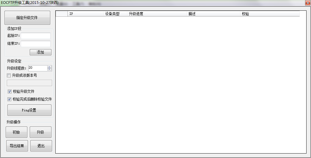 10、设置完成之后,支持对升级的操作选择,包括了初始、升级、导出结果、退出等;