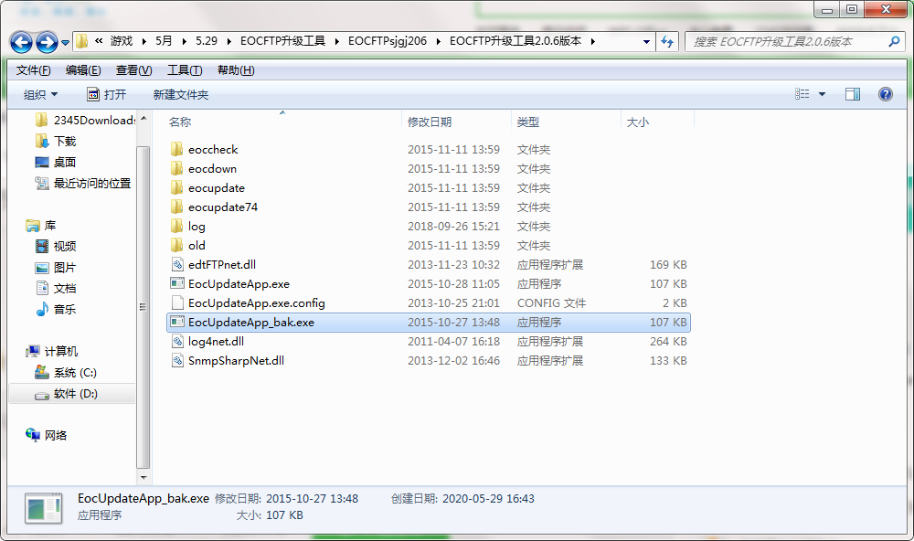 1、将软件下载完成之后解压成功,点击EocUpdateApp.exe运行软件;