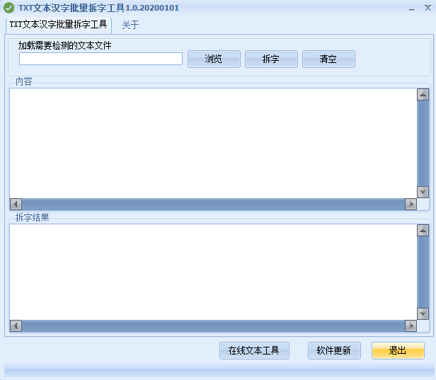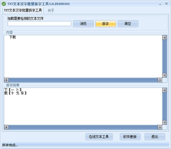 TXT文本汉字批量拆字工具官方版是一款简单好用的文字拆分软件,TXT文本汉字批量拆字工具官方版可以帮助用户将汉字拆分成几个部分,能够将你输入的文本汉字进行批量上下或左右拆分,比如“我”可以拆分成手、戈;”你“可以拆分成人、尔,对于有需要的用户来说,还是一款很不错的软件。