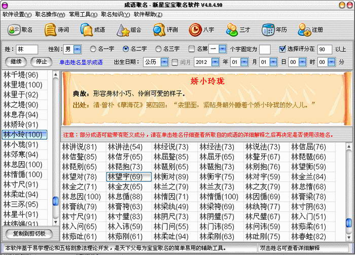 6.支持成语模式取名,比如“林妙可”,便取自成语“妙不可言”。