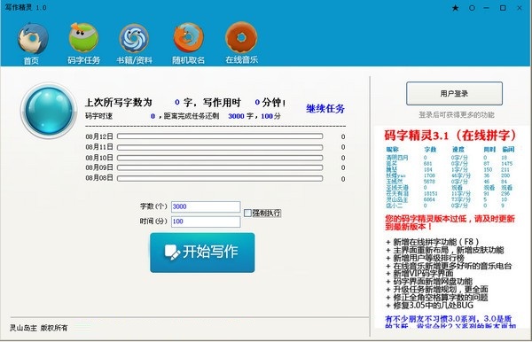 写作精灵官方版是一款界面直观清新、非常便捷易用的码字软件,可以自定义背景图片,音乐和输入声音,能够让作者更舒适、快捷、安全的进行创作之旅。写作精灵最新版让您在舒心的环境下写作,里面包含即时字数统计,各种优雅的背景颜色,以及丰富的任务目标等等。
