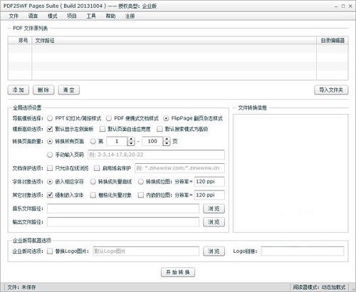 Suite可以充分定制你的翻页图书与你的品牌,信息,标志,声音,颜色以及图标、背景和其他公司相关信息。它除了能将PDF转换FLASH的SWF格式之外,还能支持幻灯片/简报、便携式文档等多种样式,可支持动态的在线加载播放与单机离线播放。