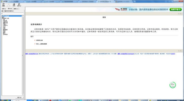 2. 点击所要查看的证券名词,在软件的右列就会出现对该名词的解释,包括名词本身及其含义。