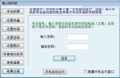 1、省心电脑挂机软件操作方便,适合于学校公司及个人使用