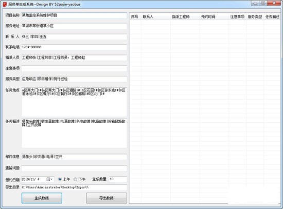 7、服务单生成系统官方版支持项目名称、服务地址、联系人、联系电话、指派人员等内容设置