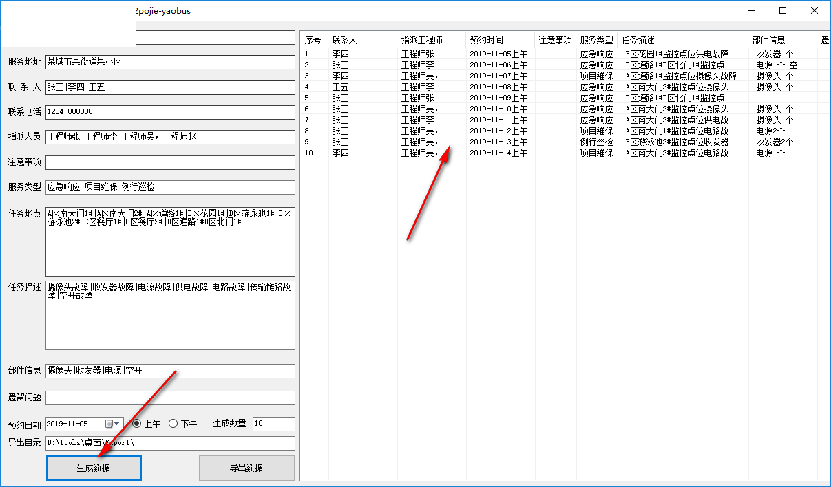 3、点击生成数据就可以在软件界面显示相关的内容,可以直接在右边查看任务内容