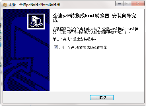 4.点击完成,全速pdf转换成html转换器软件安装成功
