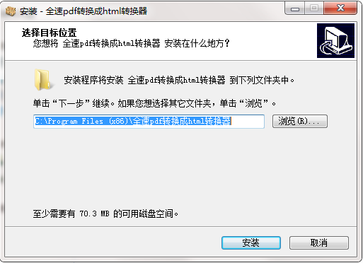 3.双击打开,进入全速pdf转换成html转换器官方版软件界面,选择安装位置,点安装