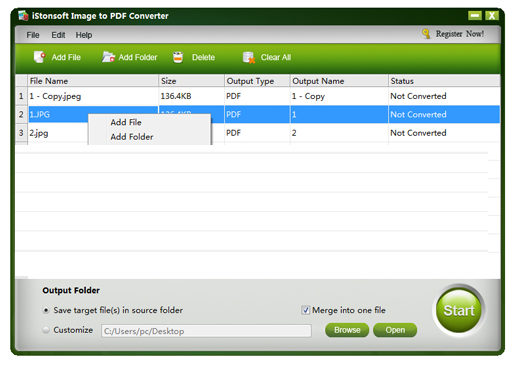 支持将输出文件与源文件保存在同一文件夹中。或将PDF文档保存到用户定义的位置。集成了合并功能,可以将多个图像文件合并为一个PDF文件。