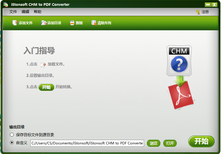 一旦选择了输入文件,除了选择将保存结果文件的位置以外,在单击“开始”按钮之前您无需执行任何其他操作。iStonsoft CHM to PDF