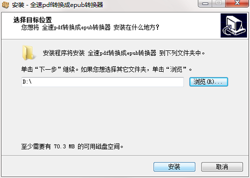 3.双击打开,进入全速pdf转换成epub转换器软件界面,选择安装位置,点击下一步