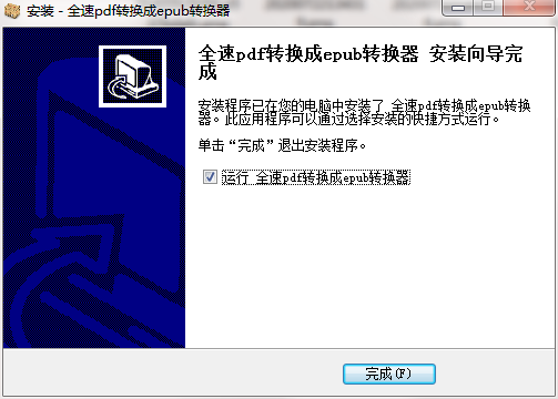 4.点击完成,全速pdf转换成epub转换器软件安装成功
