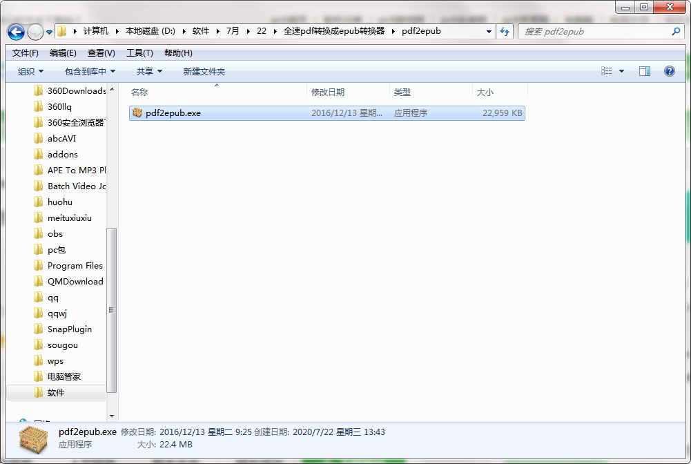 2.解压全速pdf转换成epub转换器软件,运行“EXE.文件”