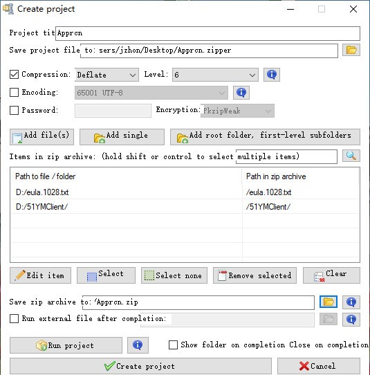 1、运行后首先点击「Create」按钮,进入项目创建界面。你可以在里面指定需要压缩哪些文件、压缩文件存放在哪里、压缩质量等等