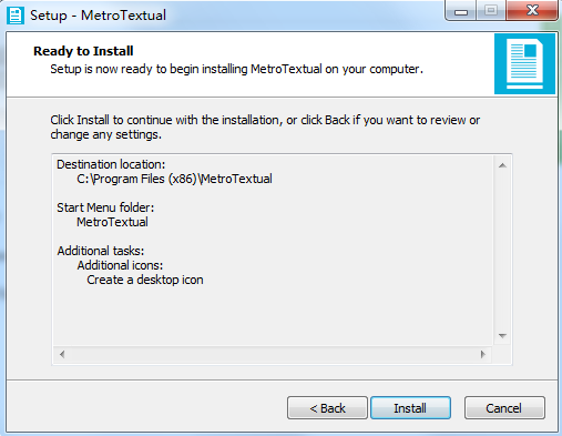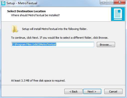3、选择安装位置,默认的是“C:\Program Files (x86)\MetroTextual”,想修改点browse
