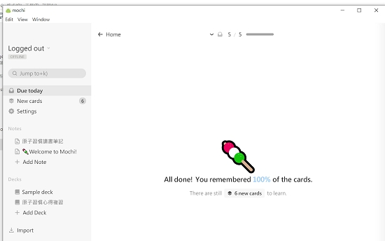 Mochi官方版是一款用来提高学习效率的记忆笔记工具,Mochi官方版可以在电脑上对你看到的内容进行记录,然后转换成记忆卡片的形式,通过间隔重复提醒来提高记忆、学习效率,支持导入