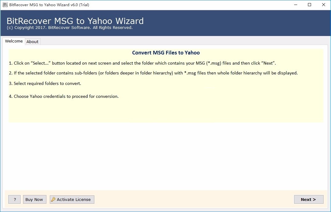 BitRecover MSG to Yahoo Wizard最新版是一款十分优秀和功能出众实用的MSG转Yahoo工具,BitRecover MSG
