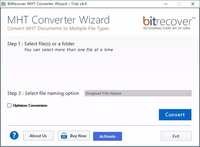 BitRecover MHT Converter Wizard官方版支持将文件从MHT转换为PDF,将MHT转换为PST,将MHT转换为MSG,将MHT转换为EML