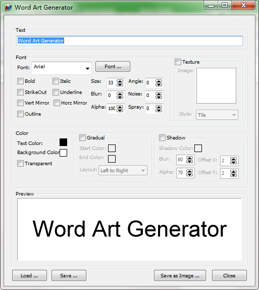 Word Art Generator最新版是一款十分优秀和出色实用的艺术字体在线转换软件。Word Art Generator最新版可以帮助用户轻松完成艺术字的生成,让经常使用photoshop的新手能更容易的使用艺术字体。软件适用于多种艺术海报的制作,可以根据用户的需求进行内容的设置编辑。
